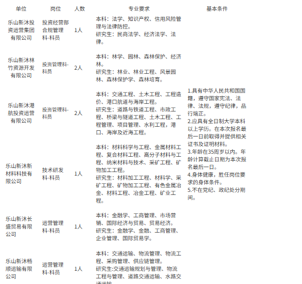 【10月公招】樂山新沐投資運營集團有限公司招聘公告
